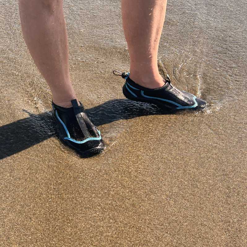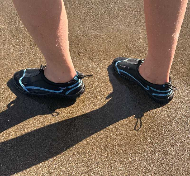 Badskorna Ocean skyddar fötterna emot vassa föremål som kan ligga i sanden eller vattnet samtidigt som gummisulorna är designade för att förminska risken att halka på blöta golv.