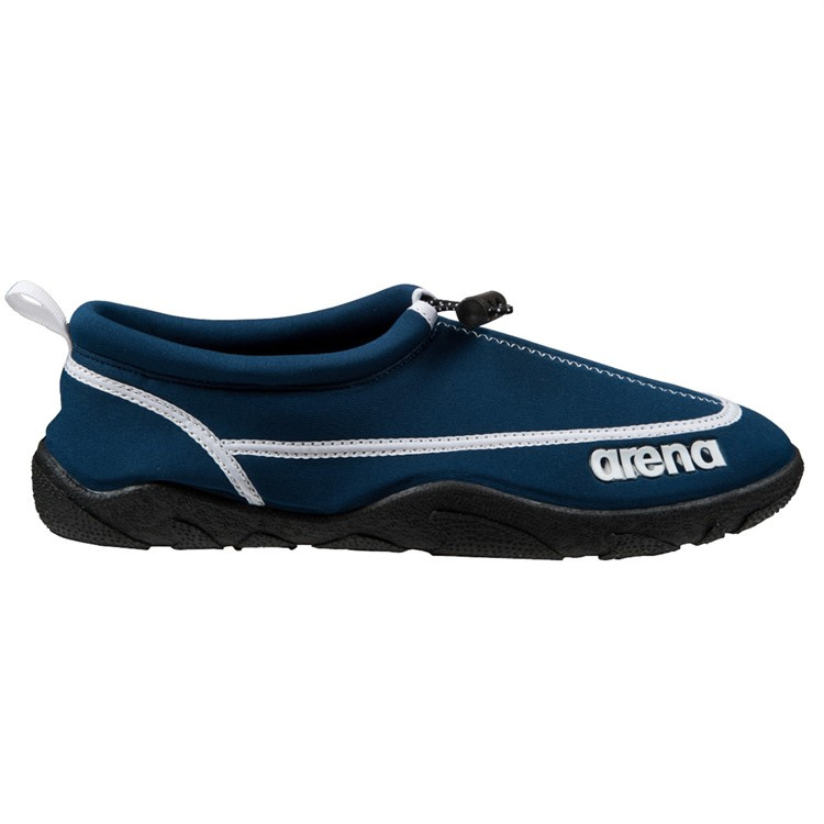 Arenas Bow Water Shoes skyddar fötterna från vassa ytor i och runt vatten. Den slitsäkra strukturerade TPR yttersulan ger samtidigt ett säkert grepp på både torra och våta ytor. Ovansidan av vattenskorna är tillverkade av svart neopren som andas, är mjuka, och bekväma nog för långa promenader.