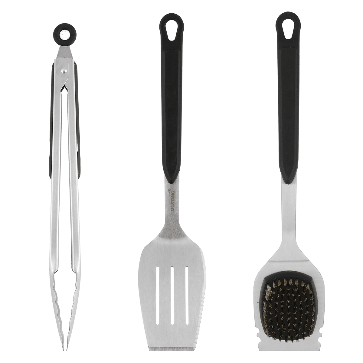 Högklassigt och stiligt set med grillredskap som inkluderar grilltång och -spatel i rostfritt stål samt en grillborste i mässing. Handtaget har en TPR-beläggning som ökar komforten och ger ett bra grepp. Grillborsten i mässing är lämplig för rengöring av ömtåliga material, såsom emalj.Egenskaper
