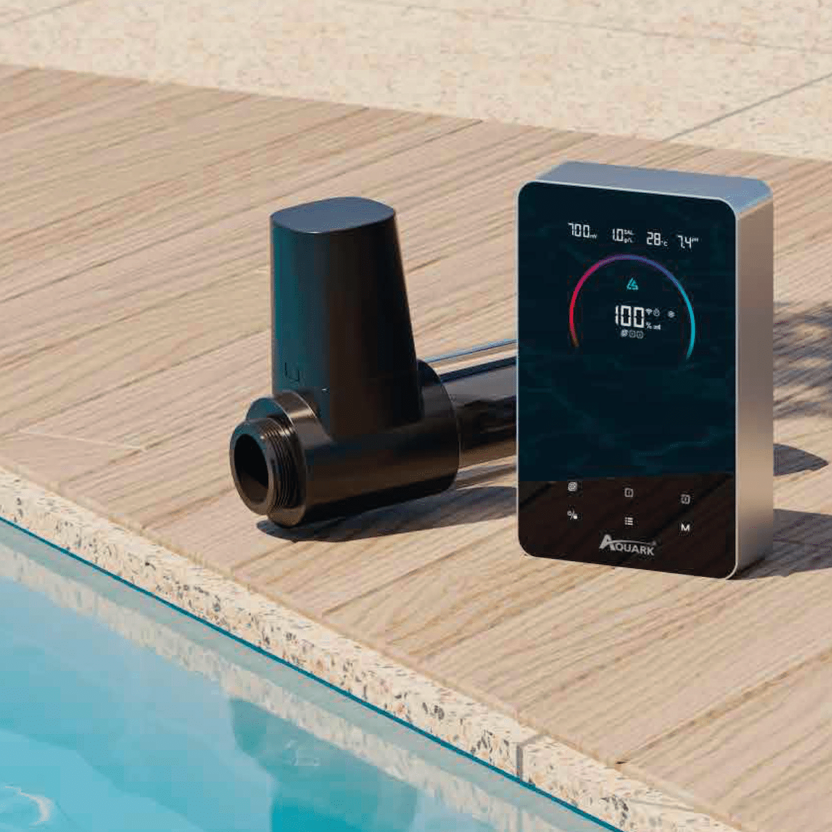 Mr. Pure Pro visar den aktuella vattenkvaliteten direkt på den stora touchskärmen på ett tydligt sätt. Läs av ORP, salthalt, vattentemperatur, och pH-värde i realtid med en enda blick på displayen.Extra låg salthalt - ner till 1 g/l