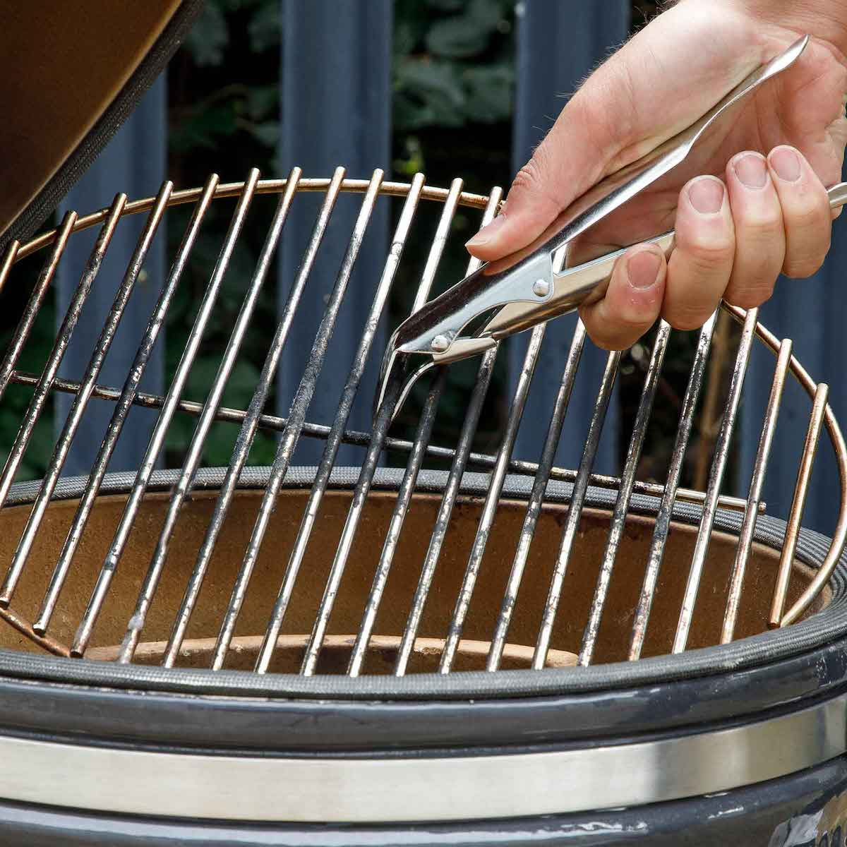 Med grillgallertången kan flytta grillens galler på ett säkert sätt utan att bränna dig. Håll tången så att halva ”anknäbben” går under gallret och nyp ihop så kan du enkelt flytta det dit du vill. När du lyfter gallret rakt uppifrån behöver du inte gripa lika hårt.- 22 cm lång