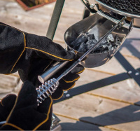 Grillgallerskrapa utan metallborst. Den har 3 trådrullar i rostfri ståltråd på en sida och en praktisk skrapa på den andra. Ett effektiv och säker verktyg för rengöring av grillgallret utan risk för att borststrån lossnar och fastnar i maten.- 40 cm långt handtag med krok så att du enkelt kan hänga grillgallerskrapan på din Kamado Sumo.