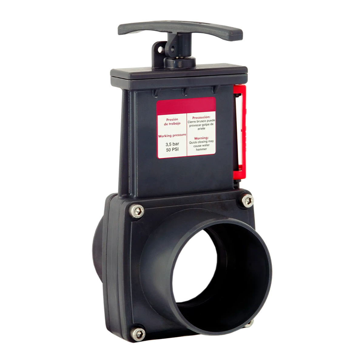 Spärrventil i PVC för att tillfälligt stoppa vattenflödet i cirkulationssystemet, mycket användbart vid t.ex. byte av rengöringsmaterial i sandfiltret eller service av poolpumpen.