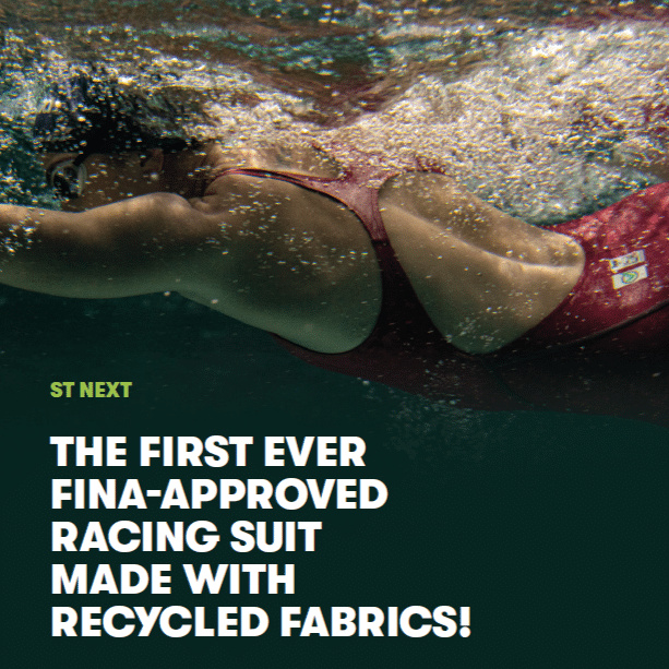 Arenas Powerskin ST Next Open Back är världens första FINA-godkända tävlingsbaddräkt som innehåller återvunnet tyg! Över 60% av materialet i dräkten kommer från textilavfall som annars skulle kastats bort. Denna förnyade versionen av deras ST baddräkt är också mer hållbar och 20% lättare för snabbare simning och minimalt vattenmotstånd.